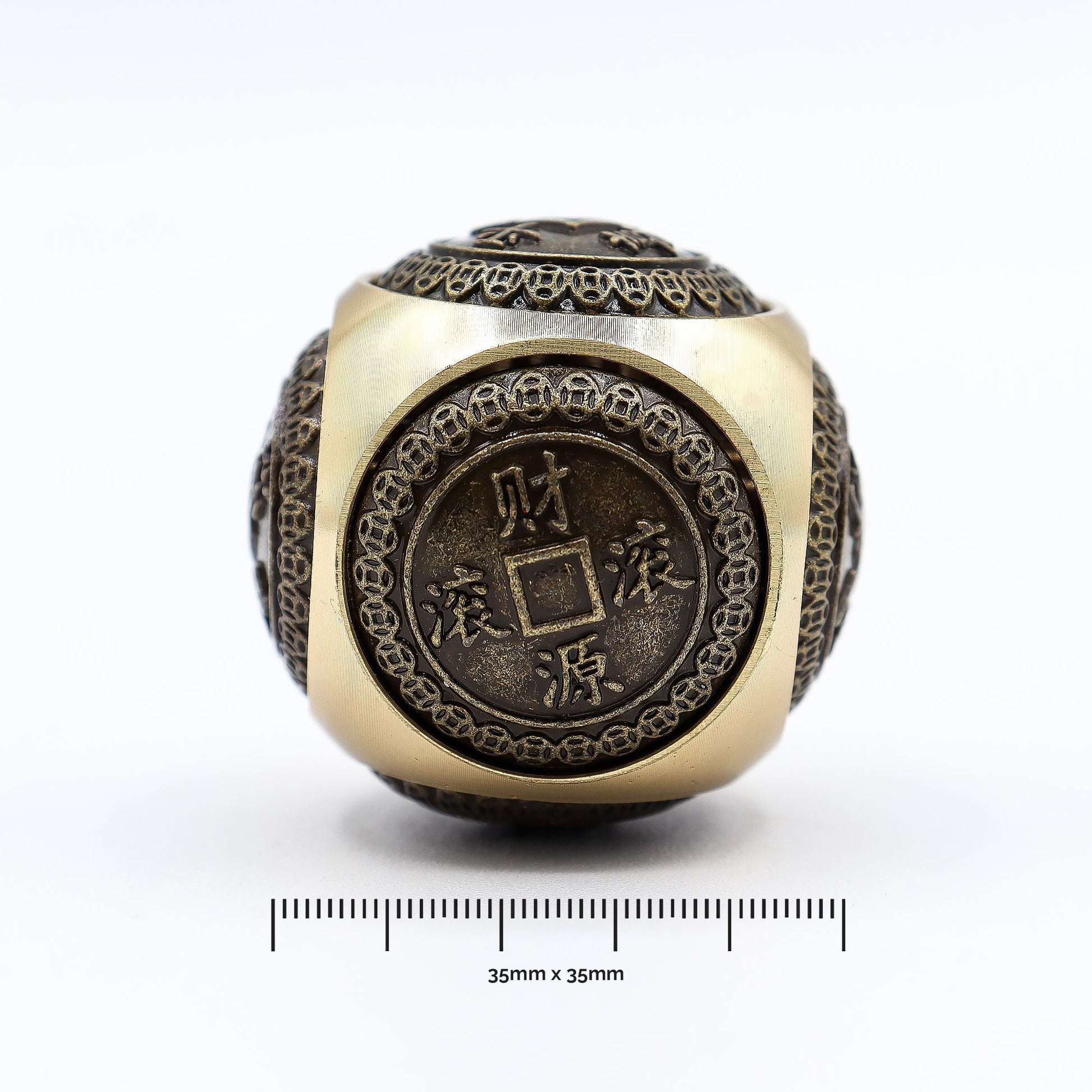 Crafted with intricate detail, each side of the dice carries traditional Chinese coin motifs that represent wealth and flow. The rounded shape makes it smooth and grounding to hold, ideal for moments of focus or mindful play. Keep it on your desk as a reminder of your intentions, carry it as a personal talisman, or gift it to someone starting a new journey.